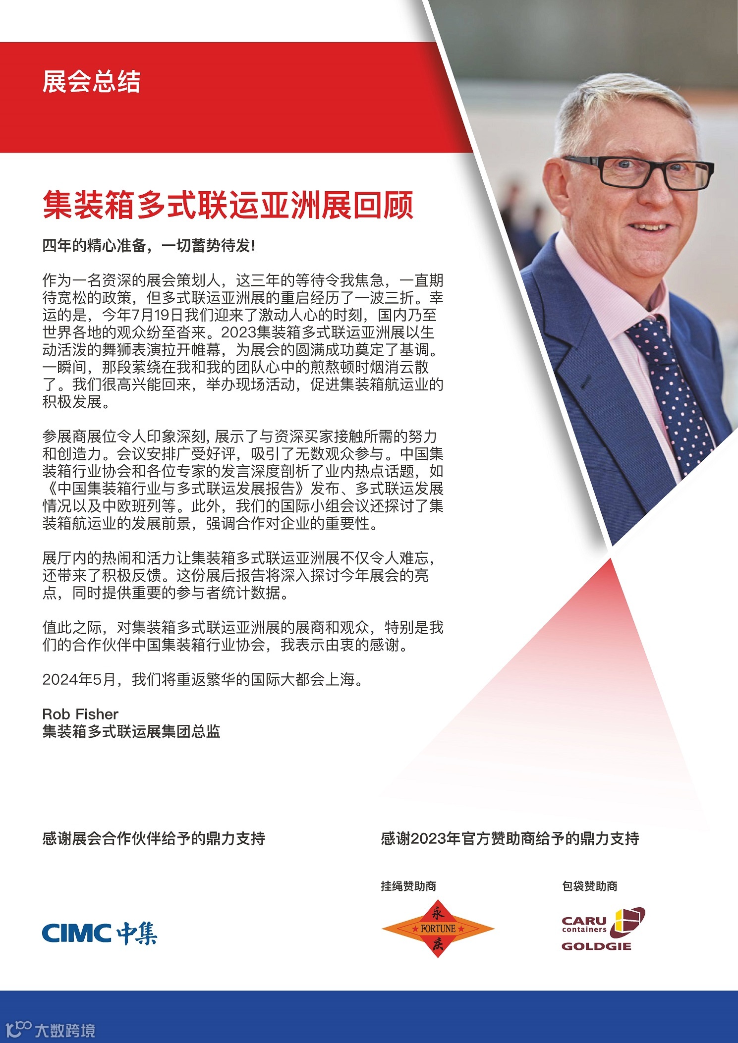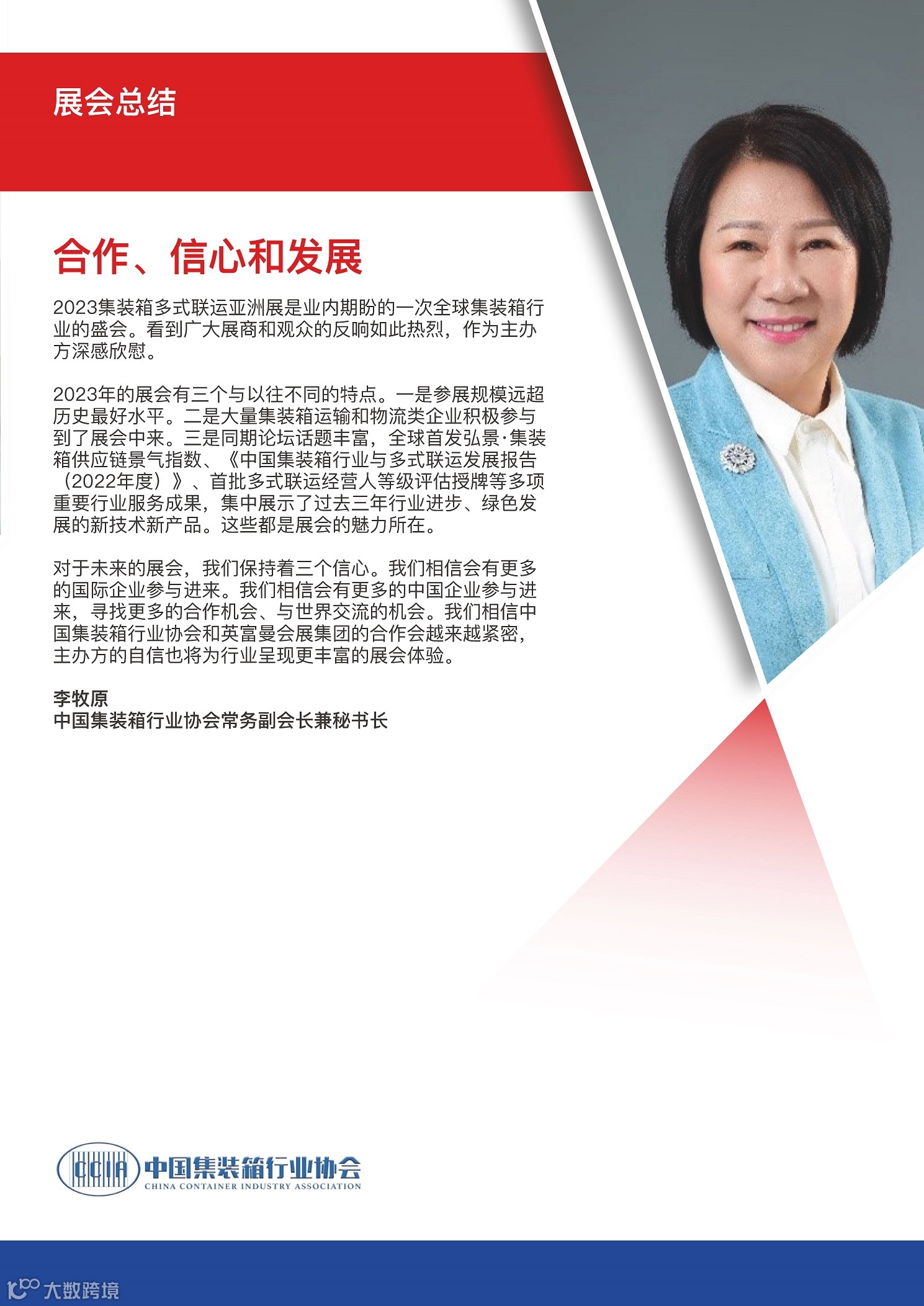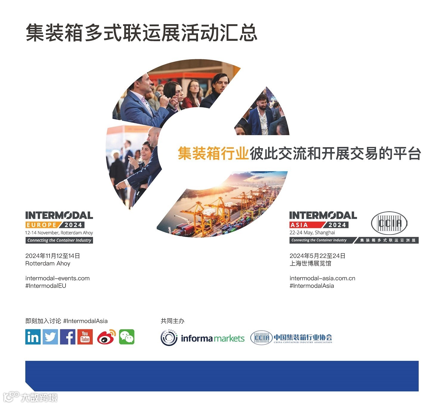 上海集装箱多式联运亚洲展(Intermodal Asia)是亚洲领先的集装箱运输物流展览会。该合作伙伴是中国集装箱工业协会(CCIA),并由世界上最大的集装箱制造商中国石油天然气集团公司(中集)赞助。它汇集了来自全球集装箱和物流行业的领先供应商和高级决策者,为与目标客户的接触,沟通和业务合作提供了绝佳的机会。