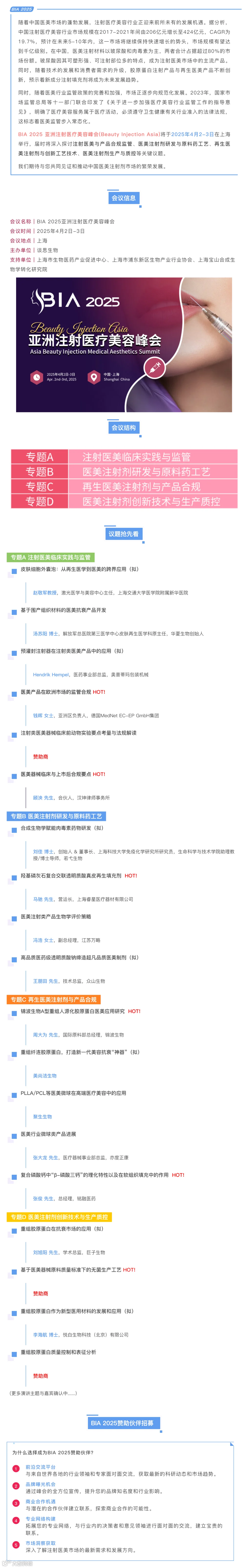 BIA 2025 亚洲注射医疗美容峰会(Beauty Injection Asia)