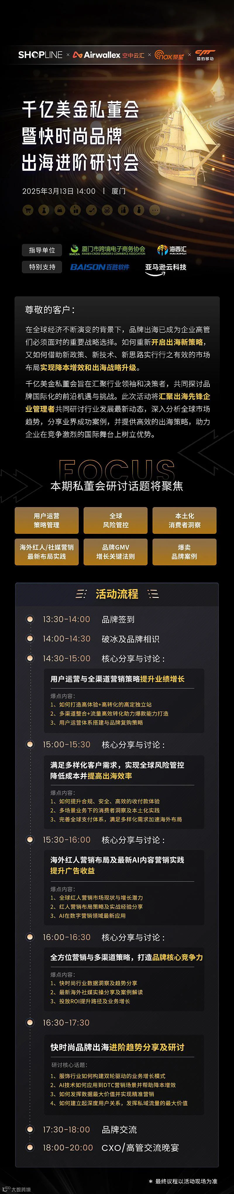 千亿美金私董会暨快时尚品牌出海进阶研讨会-厦门站