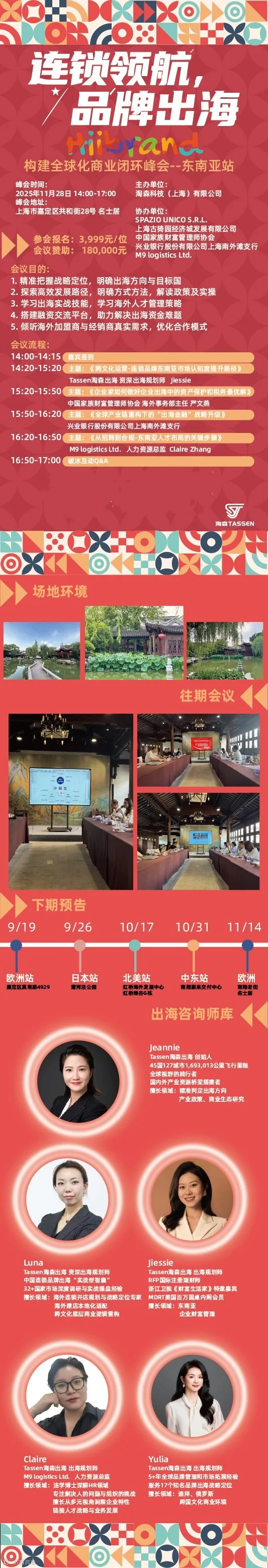通过这样的会议,连锁品牌能跳出 “国内经验复制” 的思维定式,系统梳理出海路上的市场规律和潜在风险,从而制定更贴合当地市场的战略,降低试错成本,提高出海成功率。这样的内容对于正处于出海筹备或初期阶段的品牌来说,无疑是 “及时雨”。