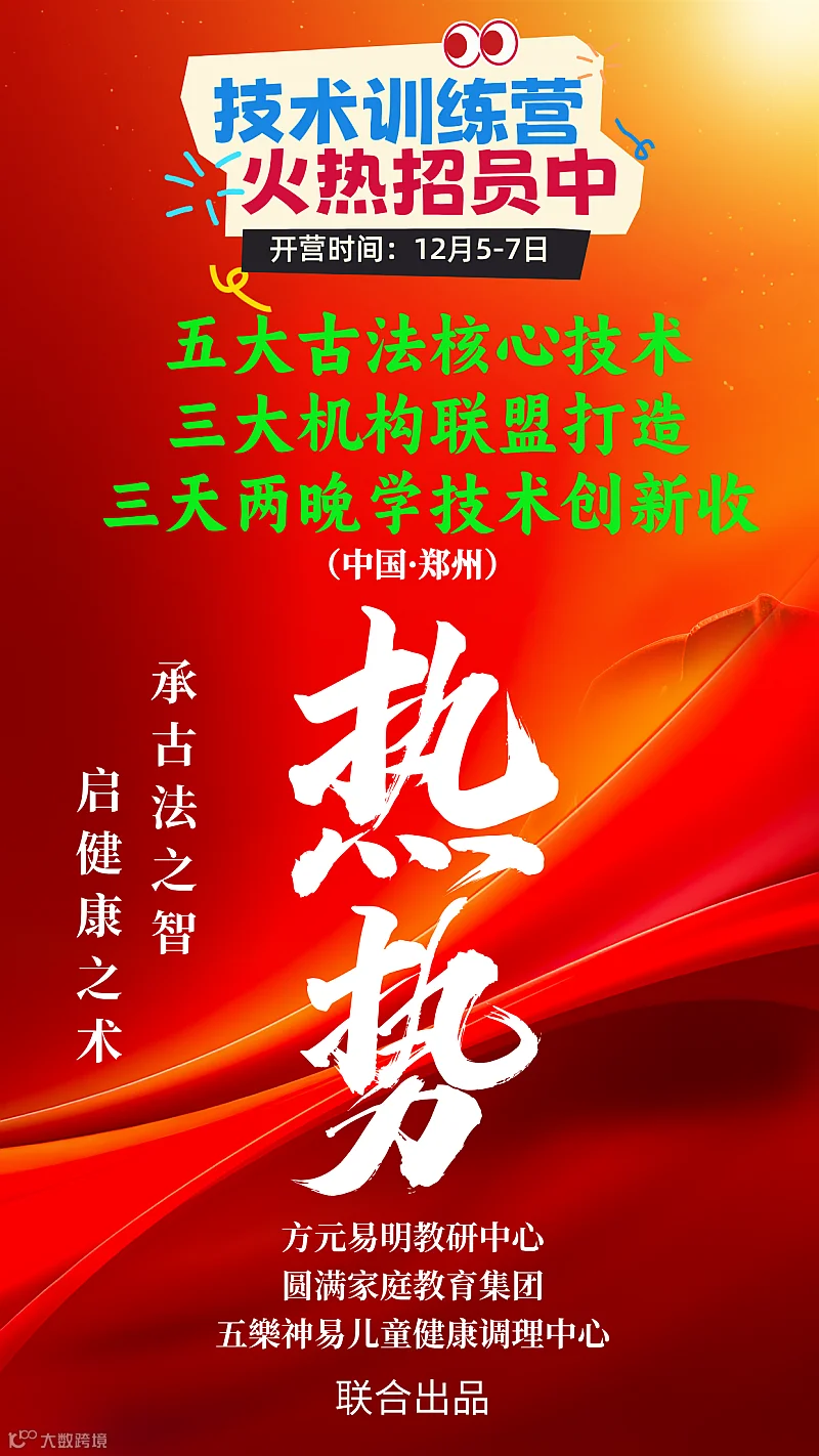 现在,机会终于来临——“方元易明”健康技术实战训练营正式开营!五大核心课程主题强势联合,涵盖从祖传技法到创新健康美学的全方位内容,新增门店技术落地、经营管理、宣传引流等全维度教学,手把手指导、全流程实战演练,让你不仅精通硬核健康技能,还能熟练掌握开店运营之道,轻松开启“技术+创业”的双赢之路!