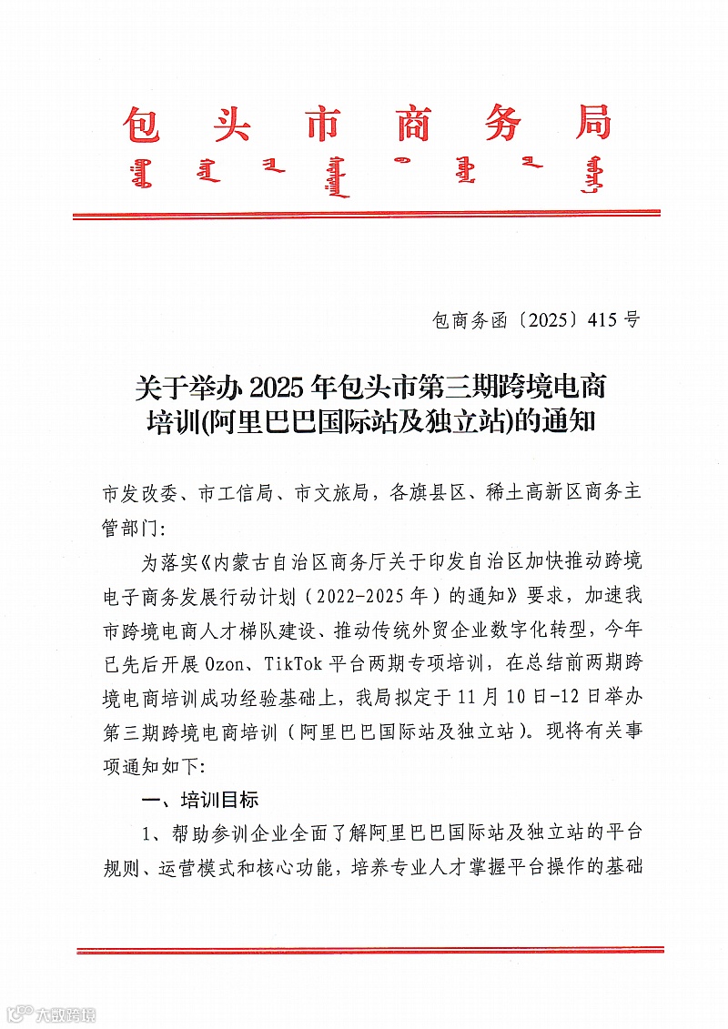 2025年包头市第三期跨境电商培训会阿里巴巴国际站、独立站专场