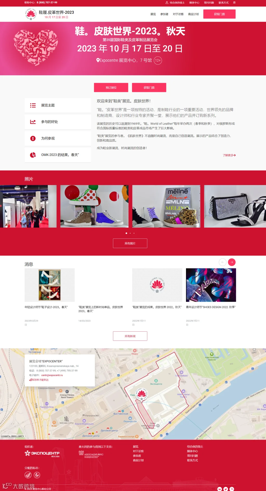 俄罗斯莫斯科鞋及箱包展览会(Obuv Mir Kozhi)创办于1969年展会举办地点分为两个展厅,分别为鞋区和皮革制品区,为参展商和采购商治谈对接提供了更多的便利。