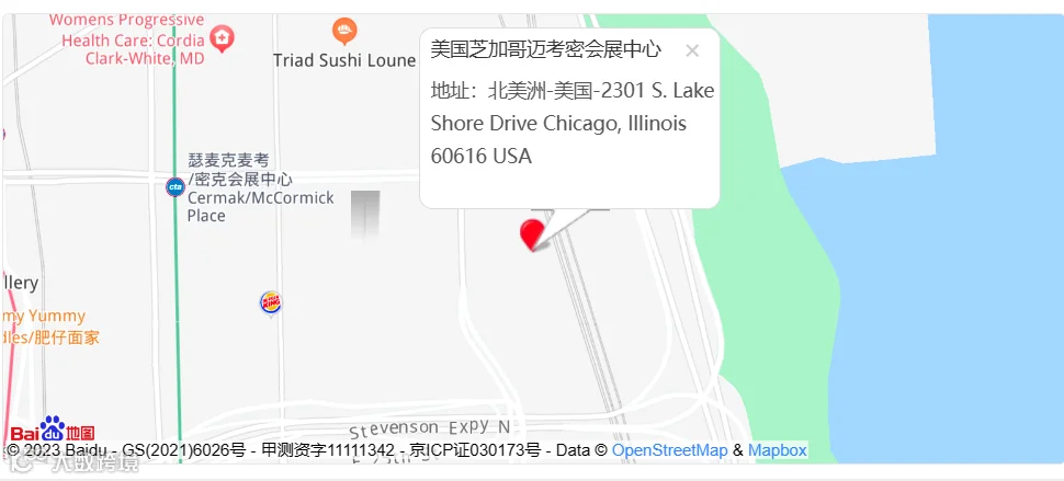 展馆地址: 北美洲-美国-2301 S.Lake Shore Drive Chicago, lllinois 60616 USA