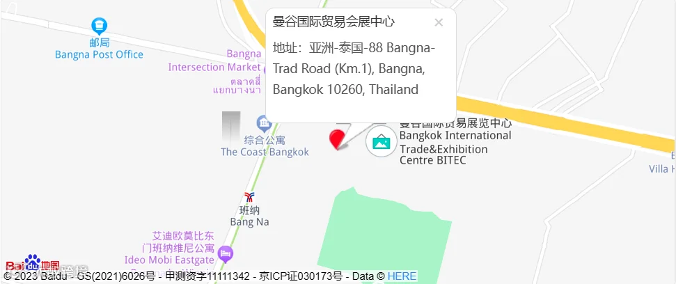 场馆面积: 70000平方米 展馆地址: 亚洲-泰国-88 Bangna-Trad Road(Km.1),Bangna, Bangkok 10260Thailand