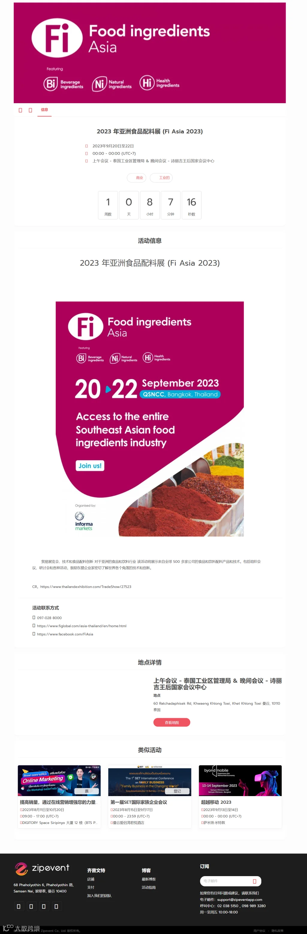 泰国曼谷食品配料展览会(Fi Asia) 是东南亚最具影响力的食品配料展览会。成立于1994年,并迅速在东南亚食品配料市场崛起。汇聚了来自世界各地的国内外原料供应商、分销商和食品饮料制造商。为食品及食品产品、原材料、食品配料、食品用品等食品设备和生活必需品提供了广阔的空间。
