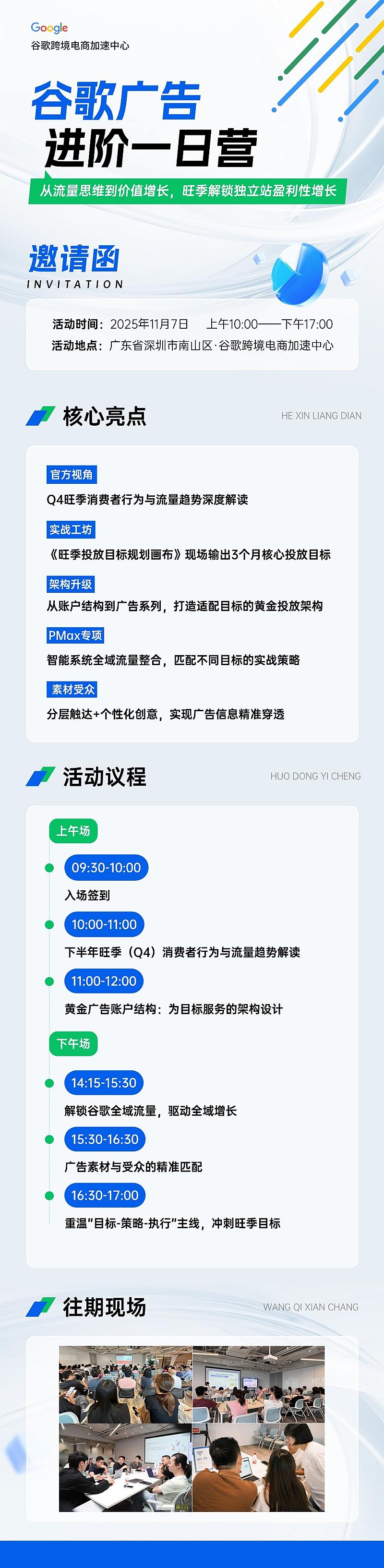 还在为 Q4 旺季广告投放焦头烂额?11 月 7 日,谷歌跨境电商加速中心(深圳南山)带你从 “流量思维” 跃迁到 “价值增长”!