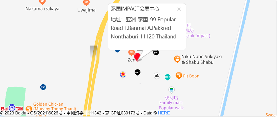 展馆地址:亚洲-泰国-99 Popular Road T.Banmai A.Pakkred Nonthaburi 11120 Thailand