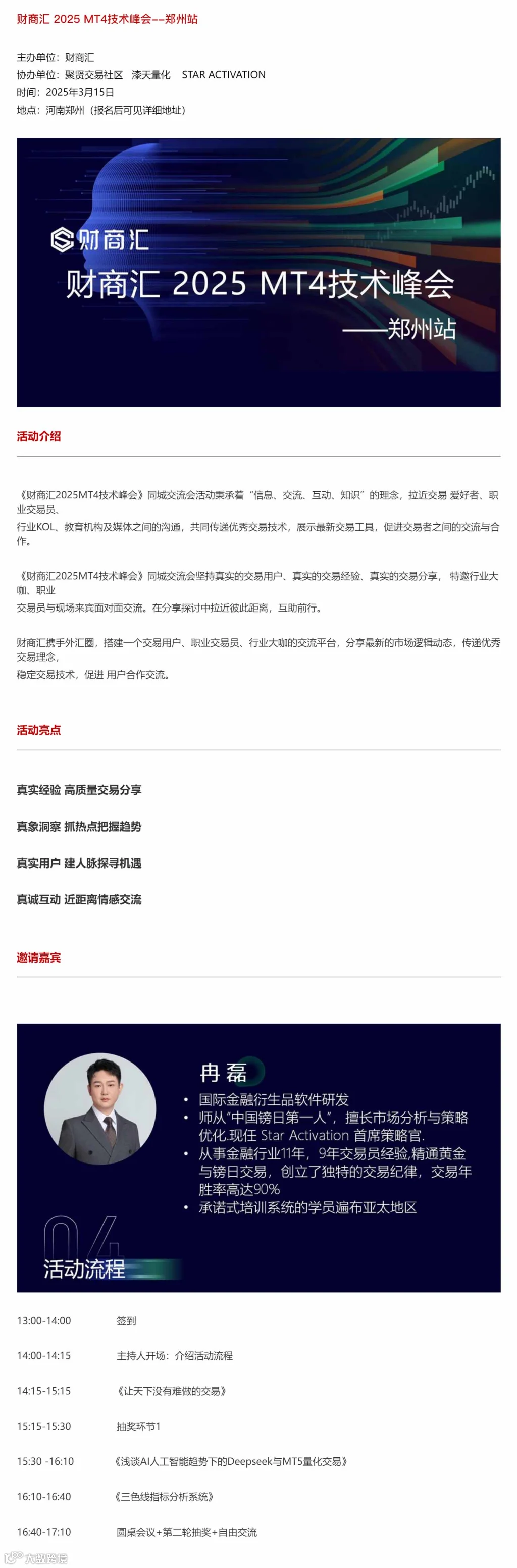 财商汇 2025 MT4技术峰会--郑州站
