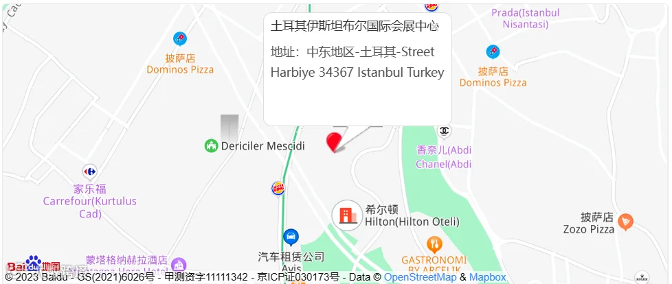 展馆地址:中东地区-土耳其-Street Harbiye 34367 Istanbul Turkey