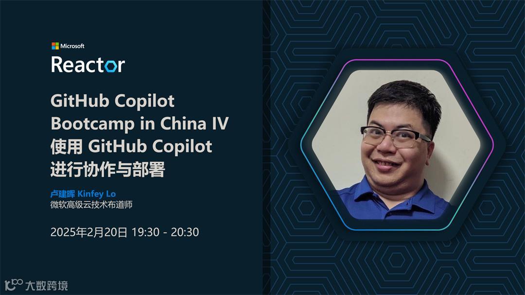 2月20日,「GitHub Copilot Bootcamp in China」第四期,一起学习如何通过 GitHub Copilot 高效协作并优化部署工作流。本次课程将教大家编写 GitHub Actions、管理拉取请求,并利用 Copilot 的强大建议来自动化部署流程。