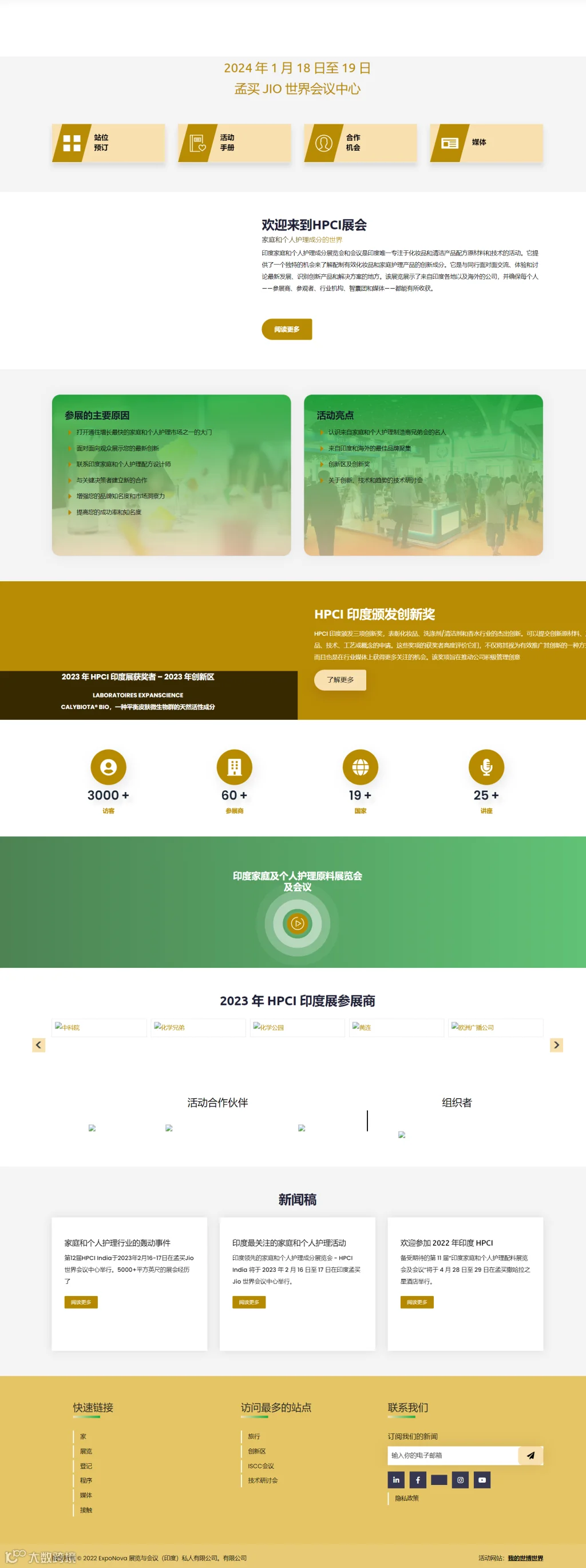 印度孟买个人护理用品展览会(HPCI India)是印度最大规模、最全面的身体护理展览会。涵盖所有方面的身体护理和化妆品。本次活动展示的产品包括化妆品、美容、天然、有机等行业的护肤品、护发品、口腔护理品、洗漱用品、化妆品、保健用品、香水、精油、清洁剂、表面清洁剂等。