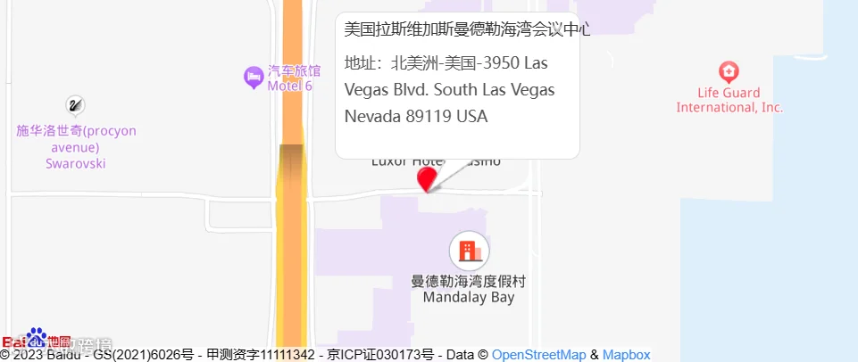 展馆地址:北美洲-美国-3950 Las Vegas Blvd. South Las Vegas Nevada 89119 USA