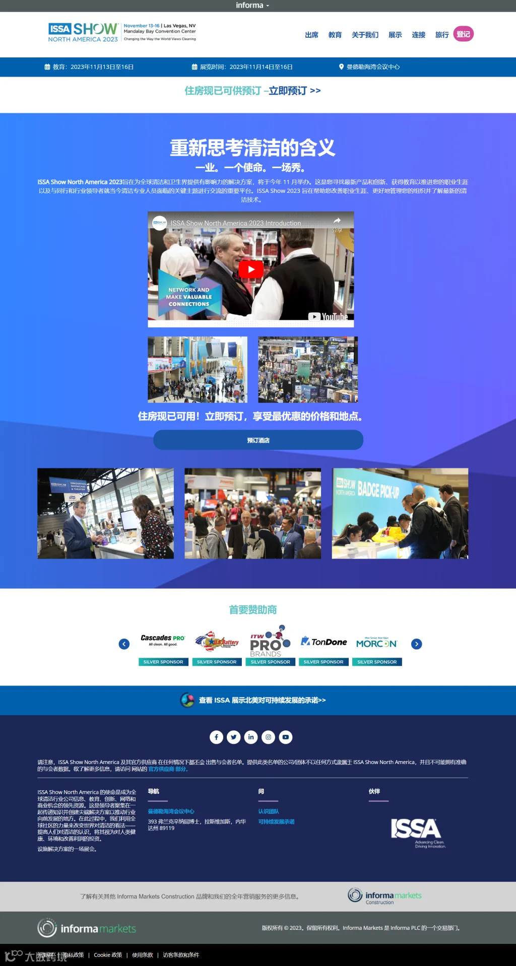 美国清洁设备、清洁用品展览会(ISSA Show North America)旨在为清洁卫生领域的专业企业和人士提供最新的行业资讯、培训材料、技术辅导、标准和规定的普及以及专业刊物等相关服务。