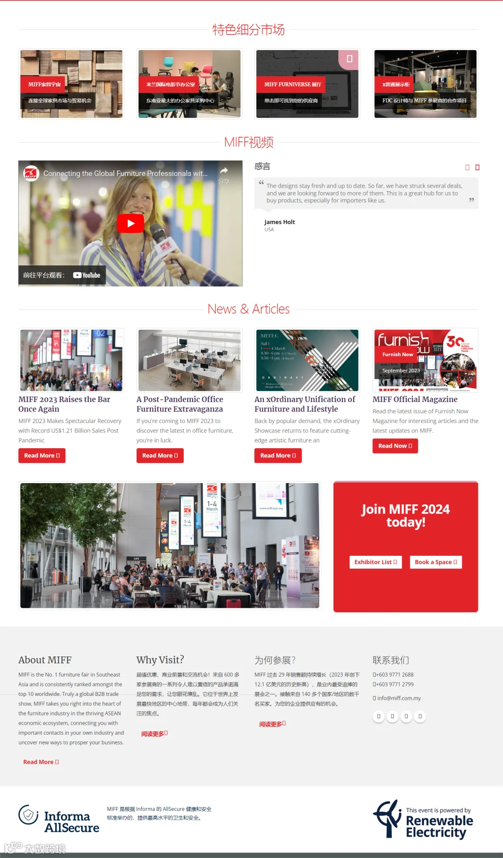 马来西亚吉隆坡家具展览会(MIFF)是东南亚首屈一指的家具展览会。始于1995年,是东盟地区规模最大、最具国际影响力的家具展,并挤身于全球十大家具展行列。