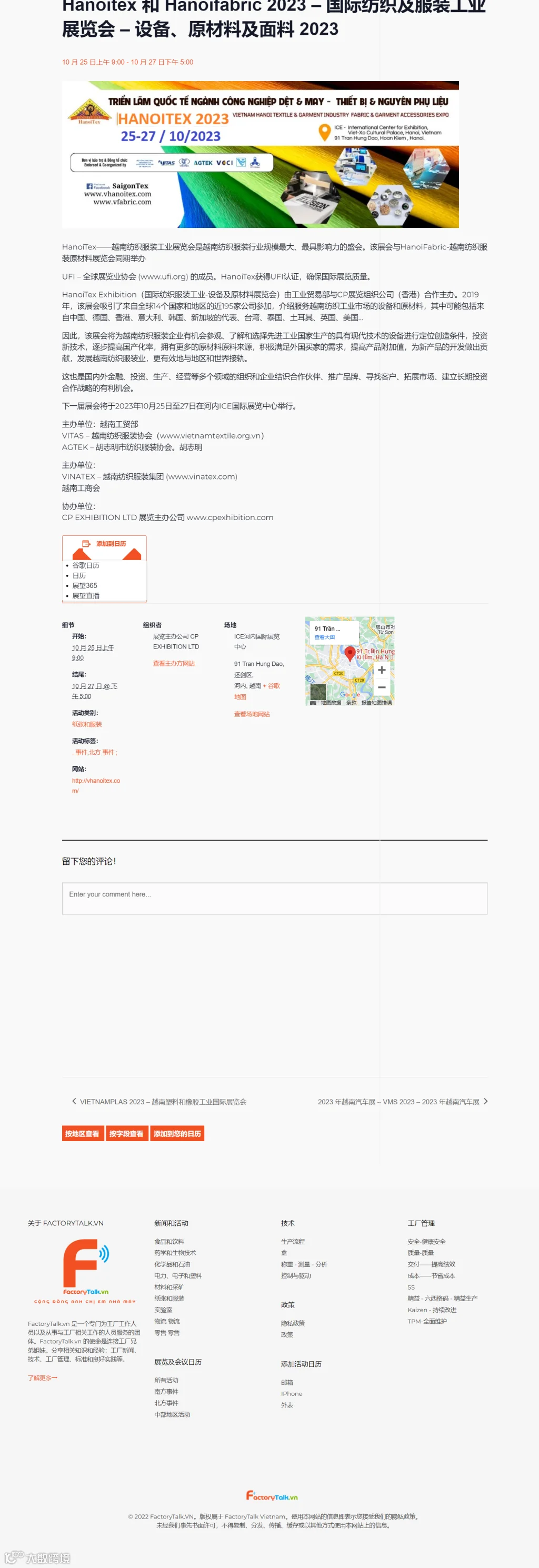 2023年越南河内纺织面料及制衣工业展览会 HANOITEX