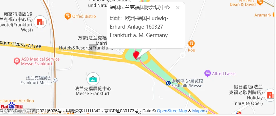 展馆地址:欧洲-德国-Ludwig-Erhard-Anlage 160327 Frankfurt a. M. Germany