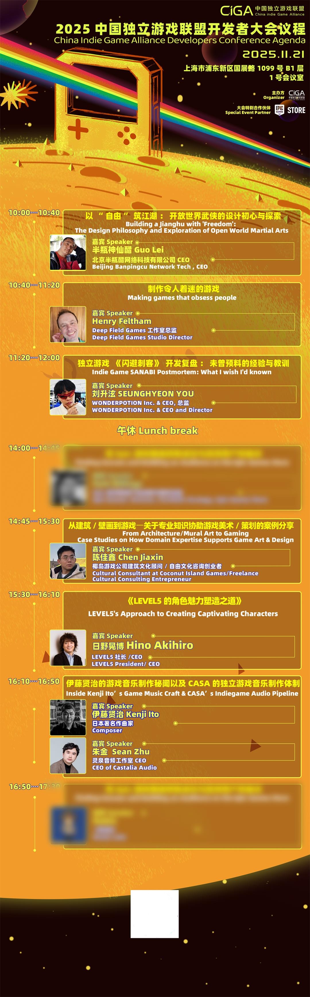 今年的嘉宾阵容正在陆续公开,欢迎关注CiGA中国独立游戏联盟官方微信号获取最新情报。