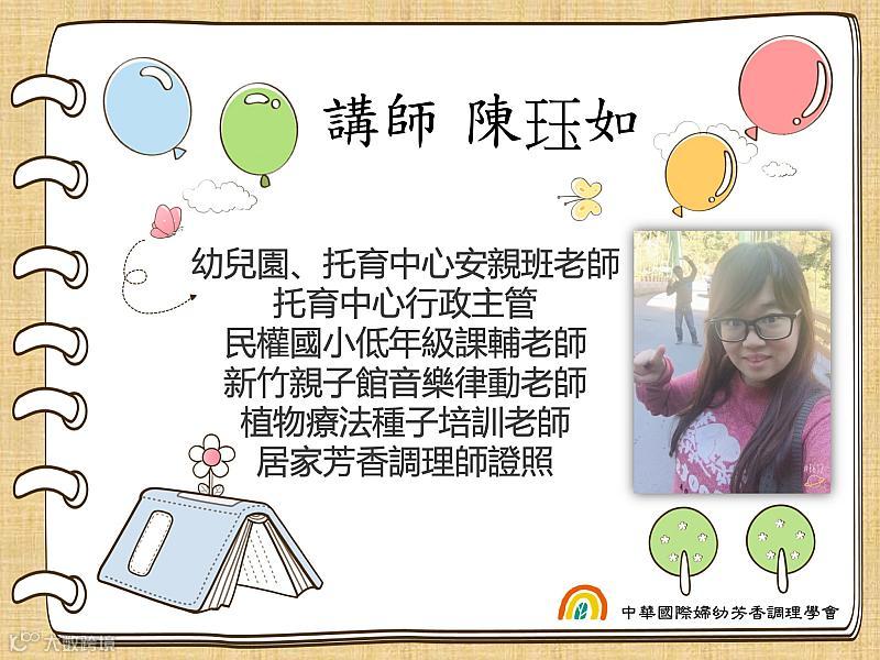 1991年美国A.M.S蒙台梭利0-3岁师资训练结业,纽约长岛大学幼儿暨小学教育硕士。曾任德育医护管理专校幼保科专任讲师暨托儿所所长、台北市社会局托儿所评鉴委员,现为0-3岁婴幼儿教育研究室教学顾问、日本知名幼教杂志《巧连智》编审。 著作有:《专业的婴幼儿照顾者》以及《放心也放手》
