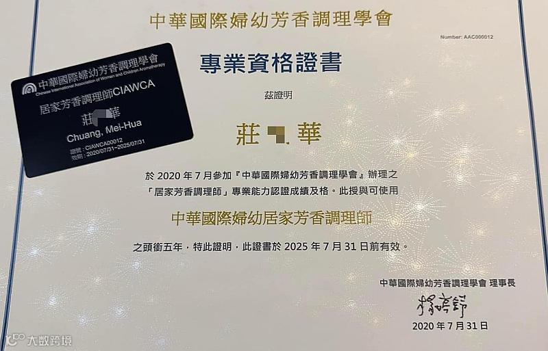 『中**际妇幼芳香调理学会』的证照五大优势: