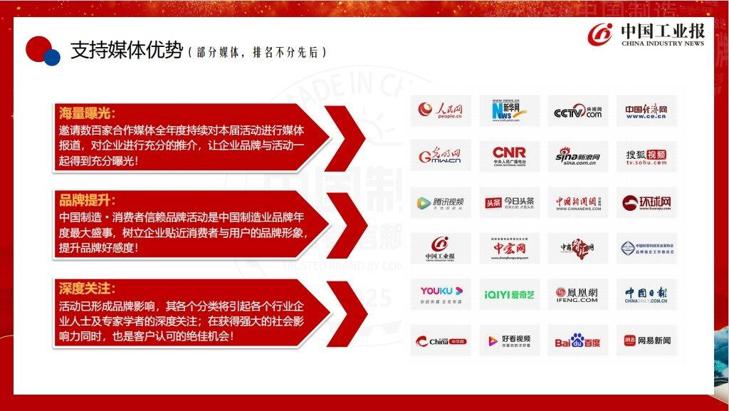 为深入贯彻落实《***办公厅关于开展消费品工业“三品”专项行动营造良好市场环境的若干意见》《***办公厅关于发挥品牌引领作用推动供需结构升级的意见》以及国家发展改革委、工信部、***国资委等七部门联合印发的《关于新时代推进品牌建设的指导意见》等文件精神,中国工业报社决定在2025年开展第三届“中国制造·消费者信赖品牌”推介活动。