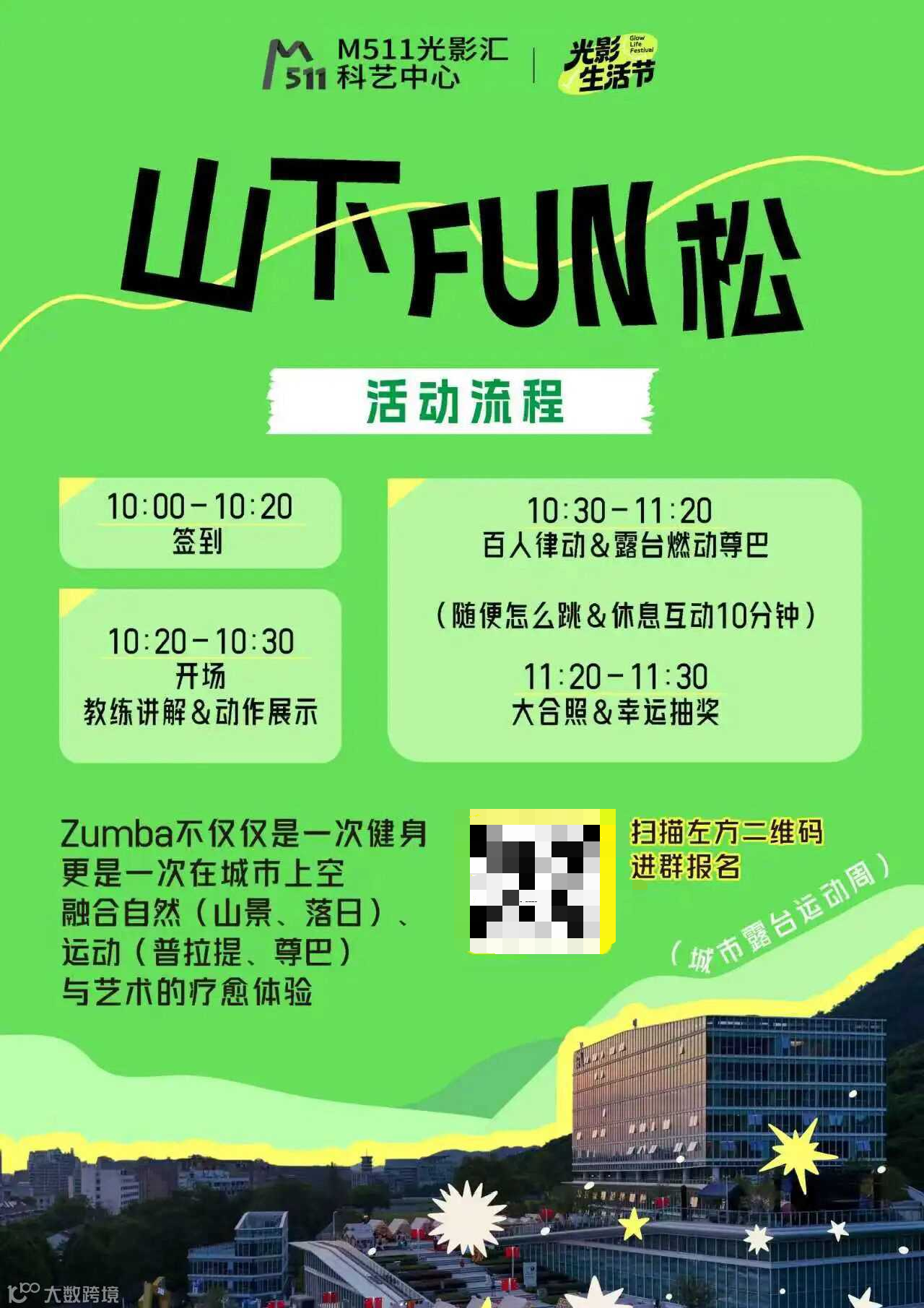 8号上午10点,M511光影汇生活节&尊巴热舞专场,有时间的报名。免费福利活动,有跑鞋、筋膜*等礼品抽奖。