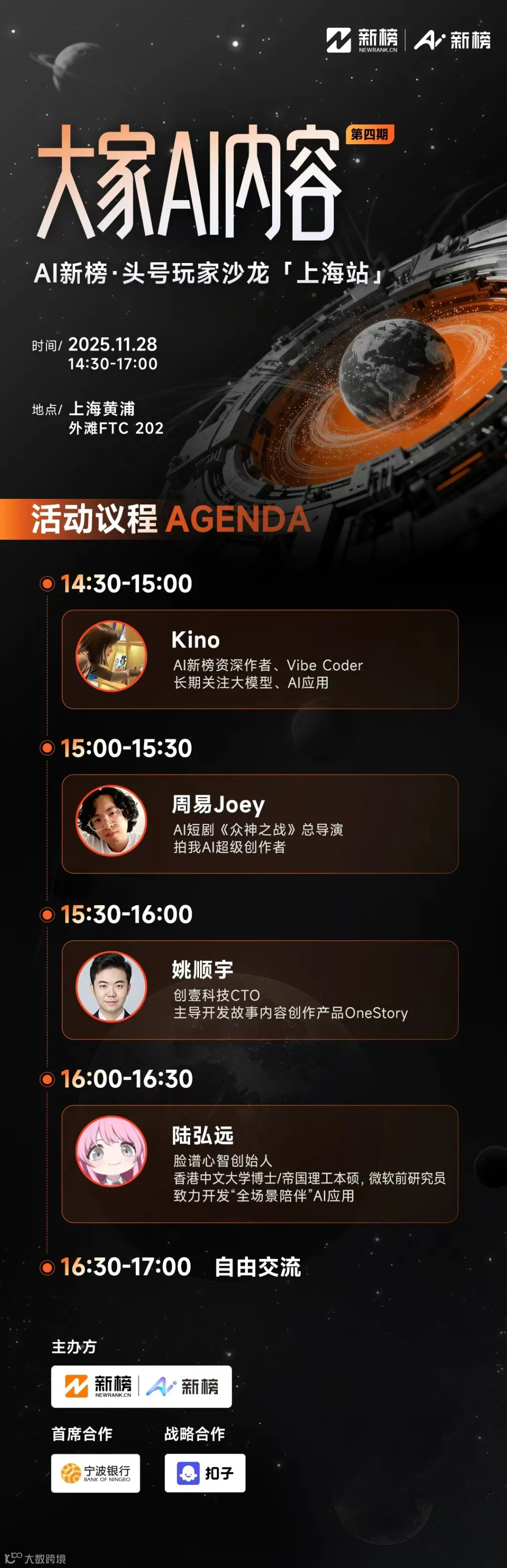 大家AI内容|AI新榜·头号玩家沙龙(第四期·上海站)
