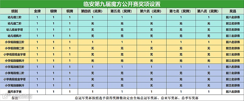 1.报名费用:本次魔方比赛报名费是60元,选手根据自己年级选择比赛组别;