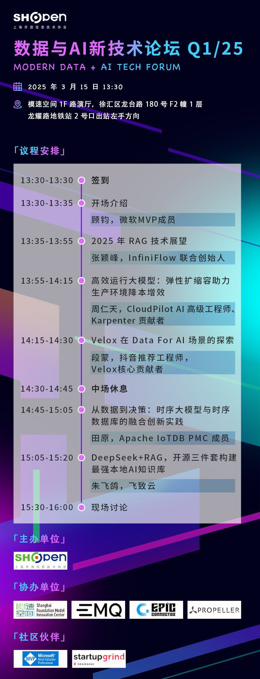 ● 14:45 - 15:05 从数据到决策:时序大模型与时序数据库的融合创新实践