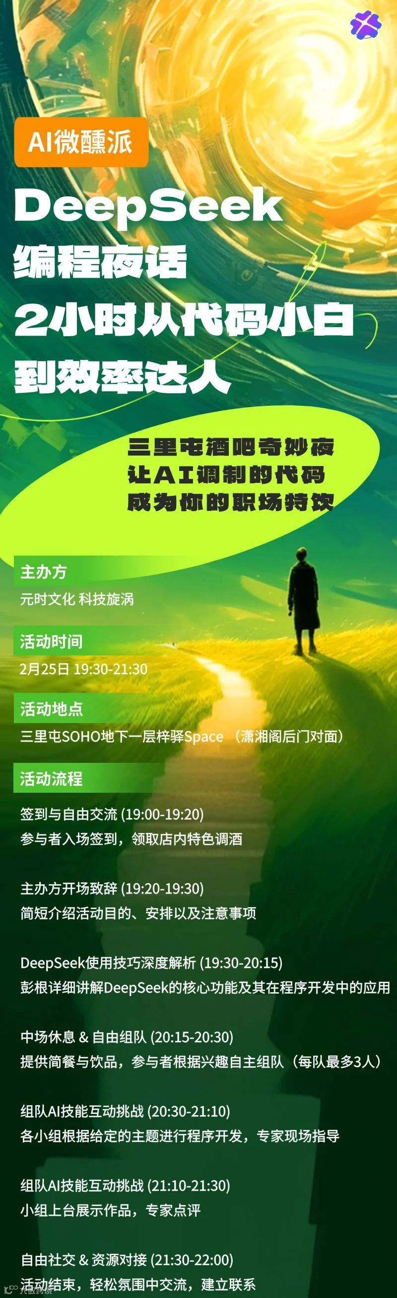 酒吧奇妙夜体验:活动选址在三里屯梓驿酒吧,将科技与酒吧文化相结合,为参与者带来独特的活动体验。在轻松愉悦的氛围中学习编程知识,让学习不再枯燥。
