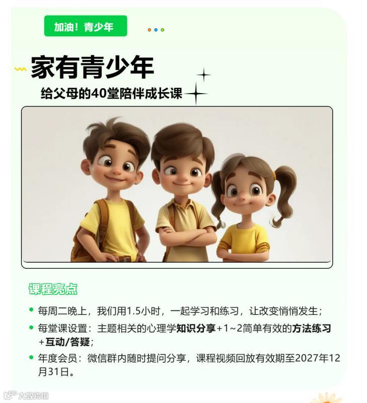 家有青少年——40堂课陪伴父母成长(可加入年度会员,也可单节听课,不限地域)
