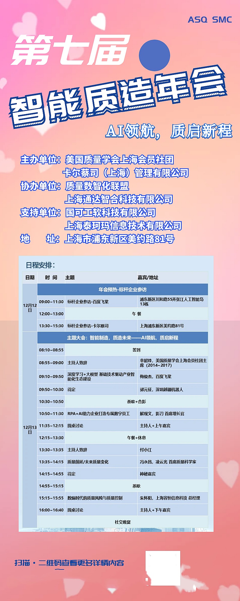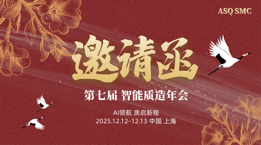 第七届智能质造年会将于12月12日~12月13日,由美国质量学会上海会员社团主办。大会主题为:“AI领航,质启新程”,各界大咖齐聚,共论前沿质量话题。