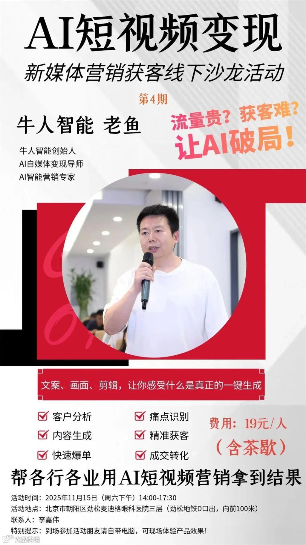 AI短视频变现 新媒体营销获客线下沙龙活动
