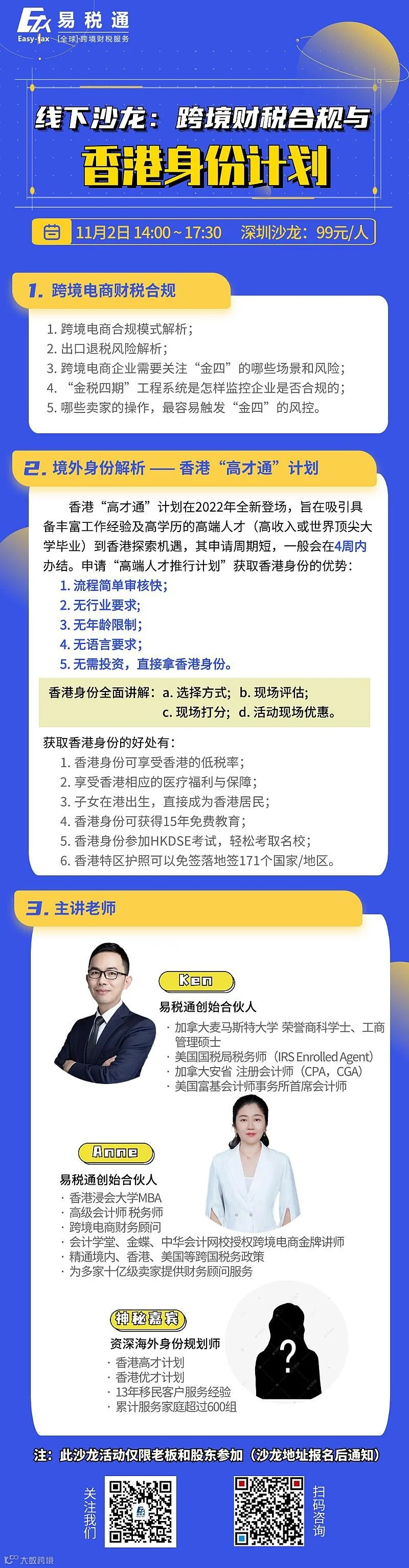 线下沙龙 跨境财税合规 & 香港身份计划