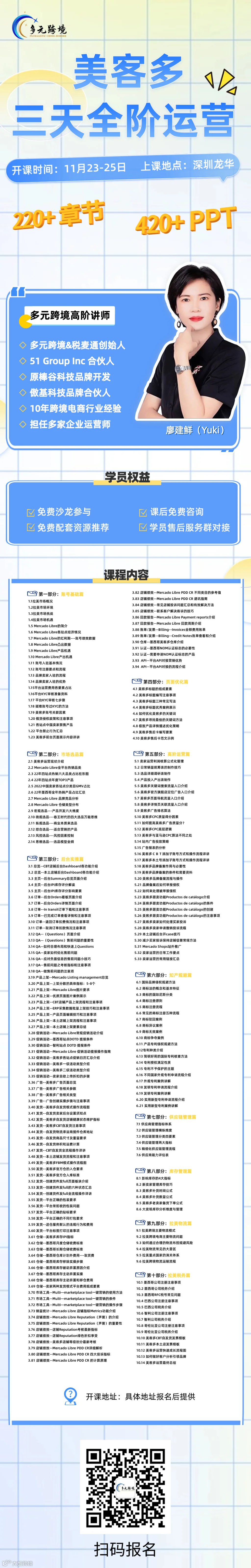 我们即将开始三天每天8小时的培训,时间9:30--18:30,由于培训内容比较多,将近220+章节知识,420+页PPT,从市场--选品--供应链--库存--后台实操--优化--高阶--知产--税务--物流全阶运营培训,请各卖家们休息好,带好电脑和本子,可以把需要咨询导师的问题先准备好,咱们现场实操交付。