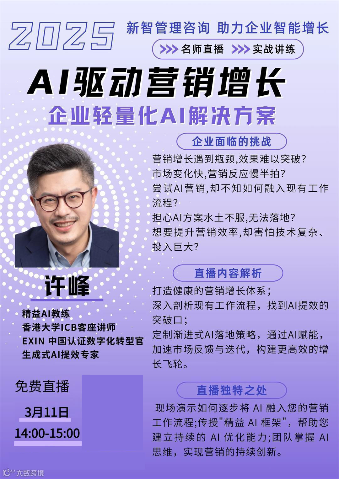 3月11日 下午14:00-15:00 免费 线上直播