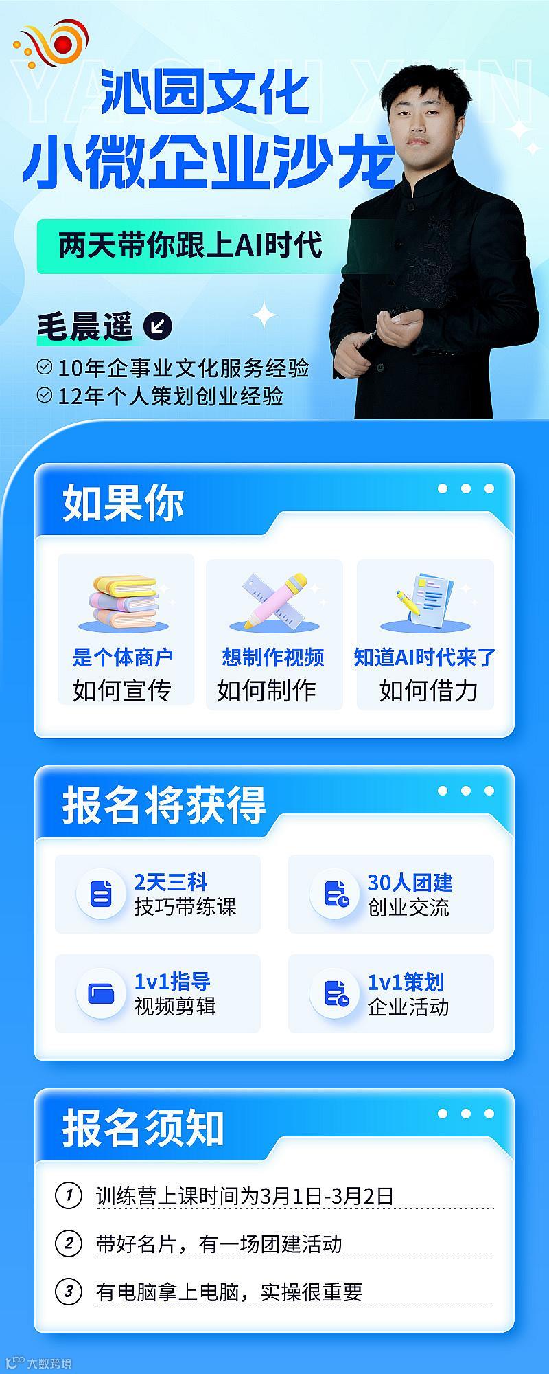 “AI不是未来,而是现在。”——作为一名拥有10年企事业文化服务经验和12年个人策划创业经历的AI早期使用者,毛晨遥用亲身经历告诉我们:AI不是大企业的专属武器,小微企业同样可以借力AI实现弯道超车。