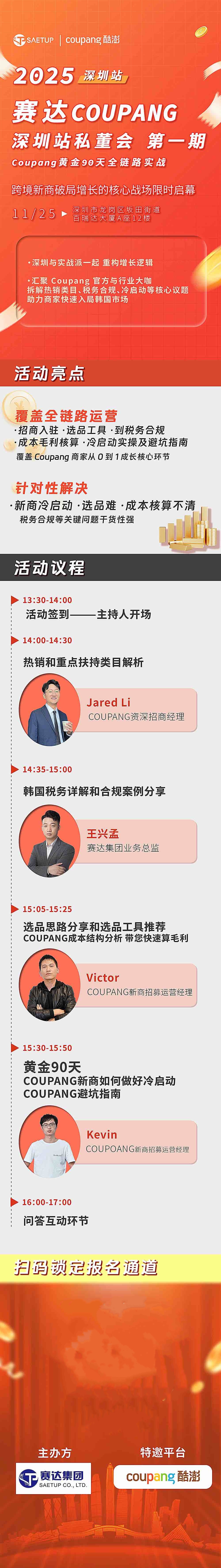 2、从合规入驻到盈利增长,从选品避坑到冷启动破局,Coupang 华南招商专场详解韩国电商运营全链路,助力商家高效布局韩国市场。