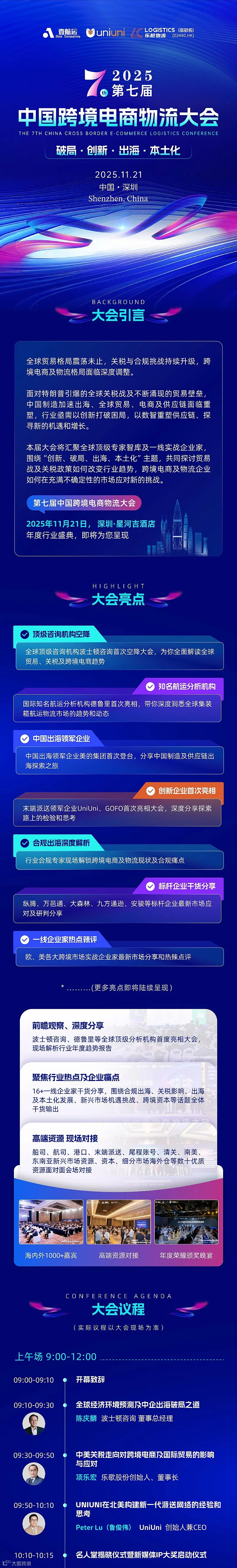 聆听前沿观察、洞悉行业趋势!【2025第七届中国跨境电商物流大会】本周五(21日)即将盛大开启