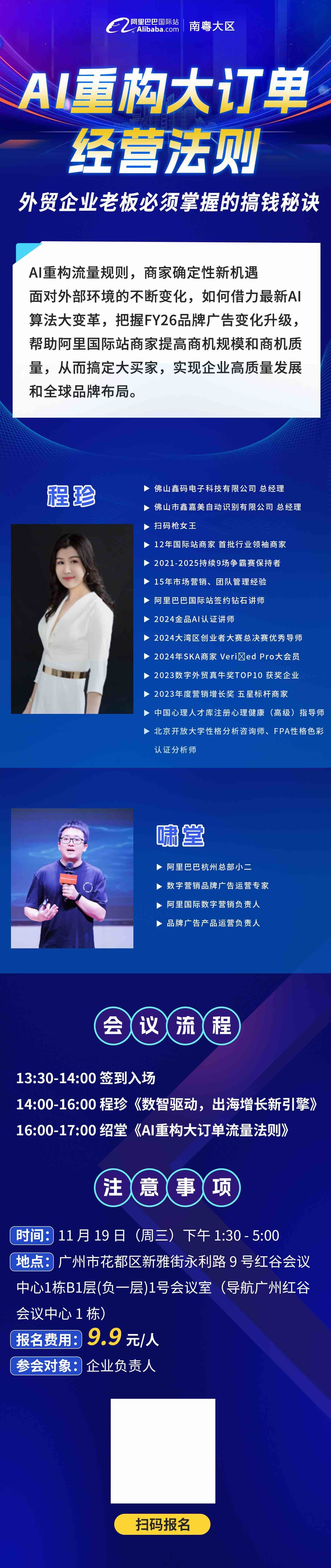 面对外部环境的不断变化,如何借力最新AI 算法大变革,把握FY26品牌广告变化升级,帮助阿里国际站商家提高商机规模和商机质量,从而搞定大买家,实现企业高质量发展和全球品牌布局。