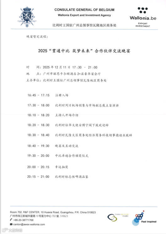 12月11日2025“贯通中比筑梦未来”合作伙伴交流晚宴【比利时大使馆】暨穗空广州珠江新城沙龙
