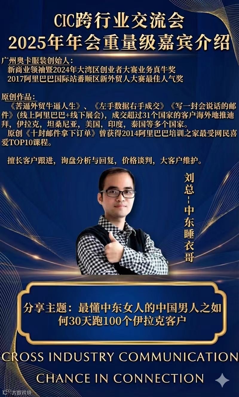 CIC年度盛典 诚挚邀请每一位奋斗在外贸领域的您,与我们共赴一场关于 “成长、连接与机会” 的思想与盛宴。这不仅是一场年会,更是一次与行业领袖深度对话、与精英伙伴高效链接的绝佳机会。