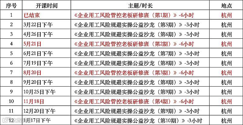 企业用工风险管控主题课程/沙龙年度规划已经出炉,具体上课时间、上课地点若有调整会及时告知,可随时联系荟智咨询顾问确认近期最新开课计划。