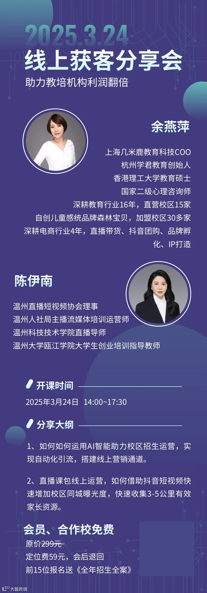 人员要求:教培创始人,CEO,校长、投资人(定向邀请,谢绝空降。)