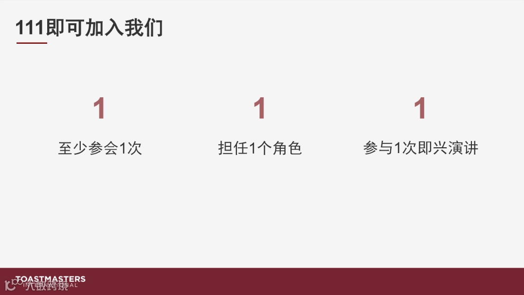 你是否正在寻找一种趣味盎然的方式来提升自己的沟通水平和建立技能以帮助您的职业生涯?Toastmasters正是可以让你与志同道合的人在充满正能量和舒适的环境下进行沟通交流的平台。