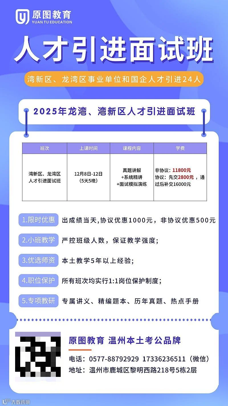 【原图教育】2025年温州湾新区、龙湾区人才引进面试班