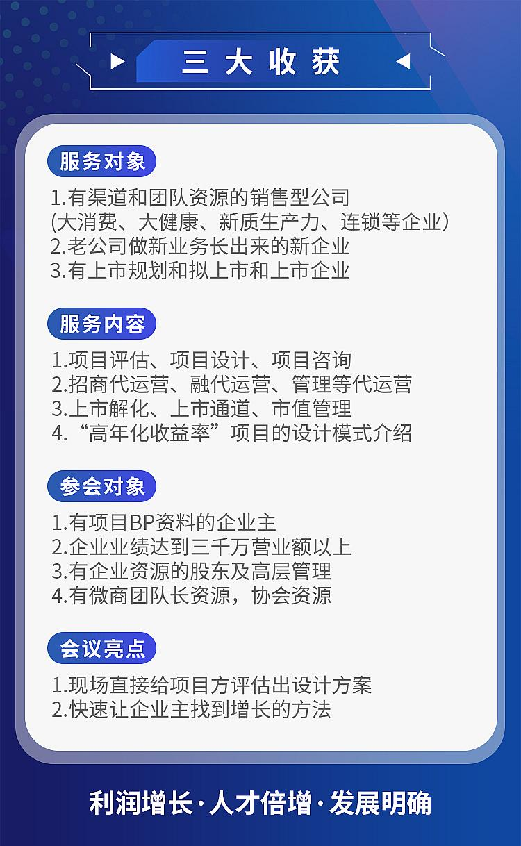当下80%企业将面临被淘汰,企业要想突破,就要有产融的思维,学习如何通过产融结合实现业绩的超级增长,如何通过“借势”,实现低成本的融钱,融人,融资源。如何开辟企业的第二曲线,让资源变现。