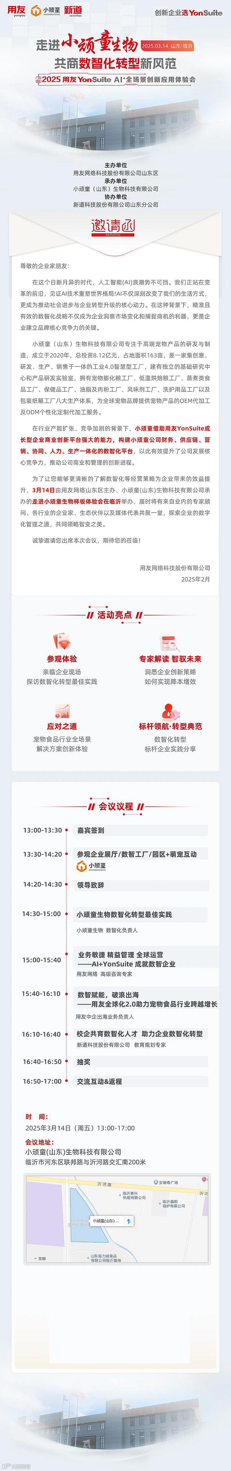 走进小顽童 共商数智化转型新风范——2025用友Yonsuite AI全场景创新应用体验会邀请函