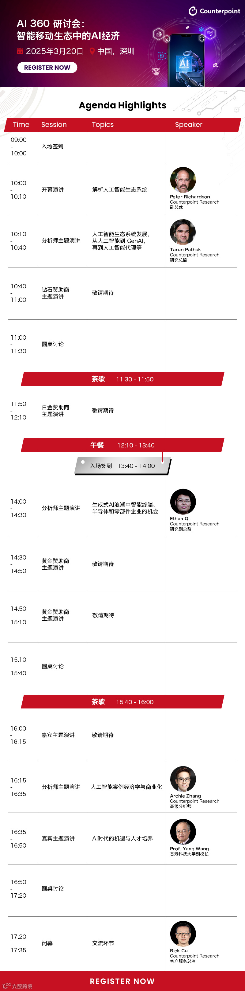 Peter Richardson,Counterpoint副总裁,拥有27年移动行业经验,将带来“解析人工智能生态系统”的主题演讲。