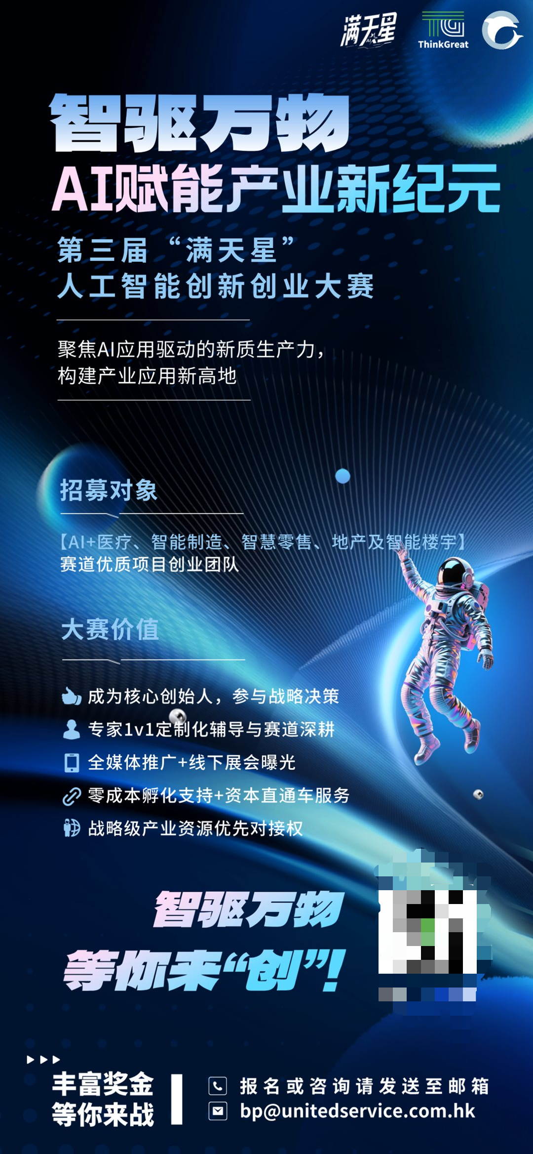 第三届满天星人工智能创新创业大赛将继续秉持“轻量化、重实效、聚焦To B”的办赛理念,以“智驱万物,AI赋能产业新纪元”为主题,聚焦AI Agent驱动的新质生产力,致力于构建产业应用新高地。大赛由联合汇数字创新生态主办,重点围绕 医疗大健康、智能制造、智慧零售、地产/智能楼宇 等关键领域,发掘具有高商业化潜力的企业级应用与硬件产品项目,推动人工智能技术深度赋能产业升级,加速创新成果向现实生产力转化,进一步深化产业生态价值。